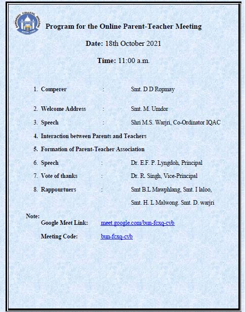 Online Orientation for the 1st, 3rd & 5th Semester on 07-09-2021 & 09-09-2021