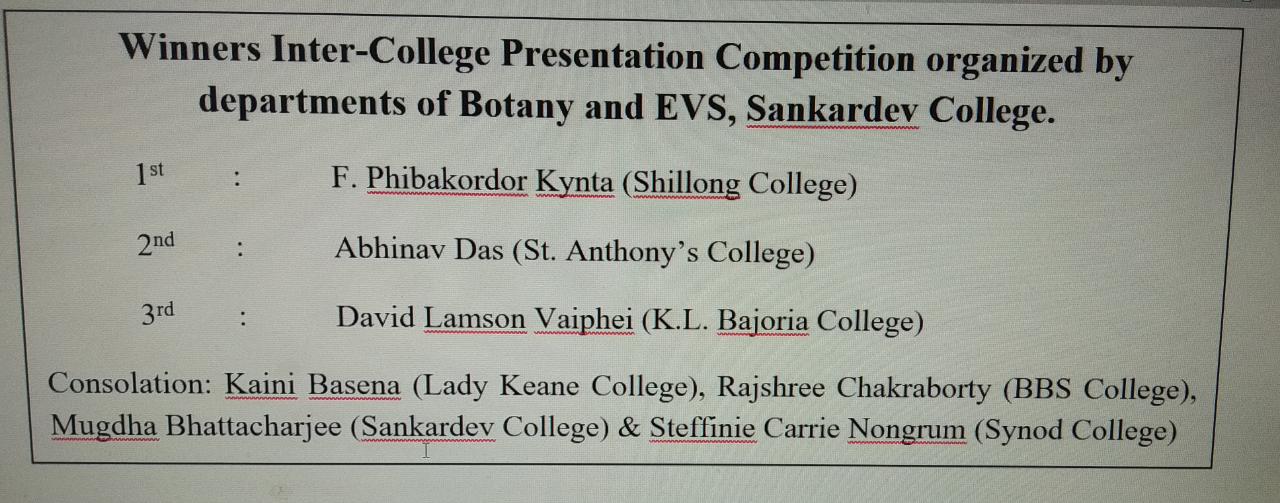 INTER COLLEGE PRESENTATION COMPETITION ON “MAJOR ENVIRONMENTAL ISSUES IN NORTH-EAST INDIA “