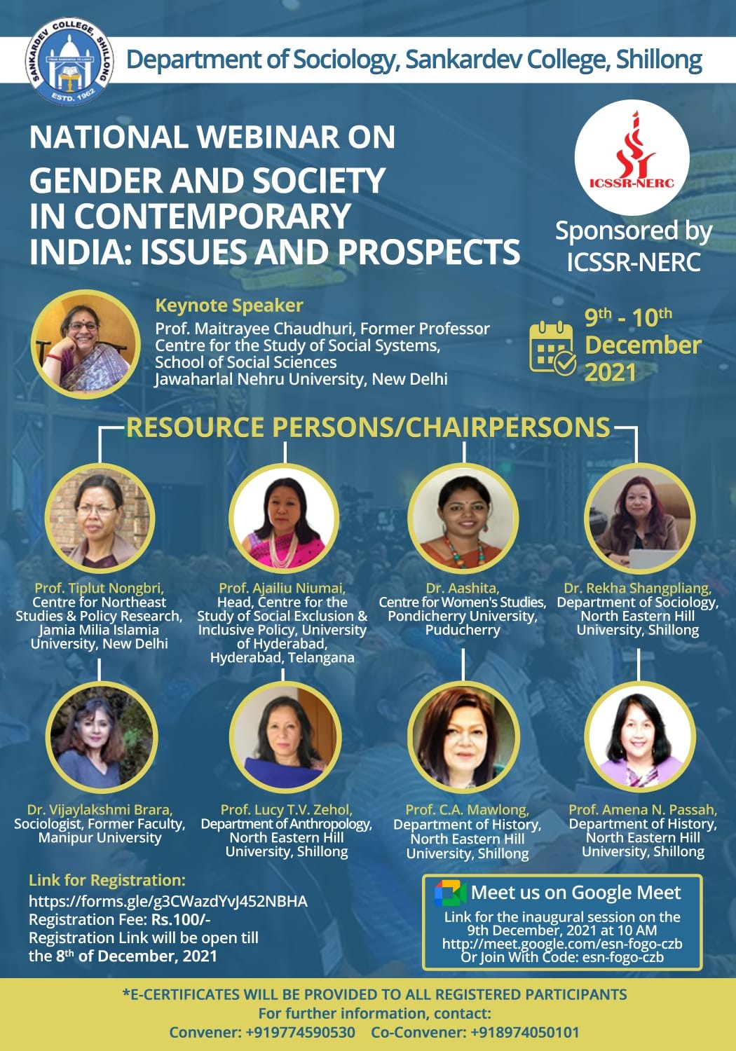 National Webinar on Gender and Society in Contemporary India:Issues and Prospects on 9-10 /12/2021